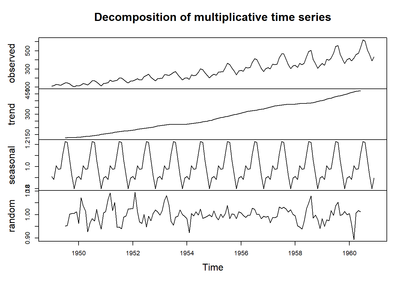 plot(decompose(AirPassengers, type ="multiplicative"))